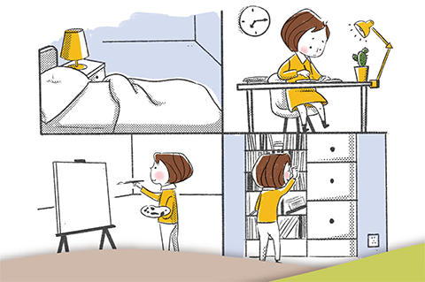 索菲亚精心设计了一套21款儿童友好成长空间贴纸,其中绿色贴纸5款(独立好习惯提醒)、黄色贴纸 6款(空间与时间管理培养)和粉色贴纸 10款(儿童房安全注意)。