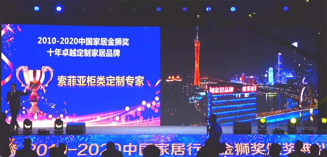 12月8日-9日,索菲亚好消息接连而至。12月8日,“盛世十年 美好人居”2010~2020中国家居行业金狮奖颁奖典礼在广州圆满落幕,索菲亚柜类定制专家荣获“十年卓越定制家居品牌”殊荣。