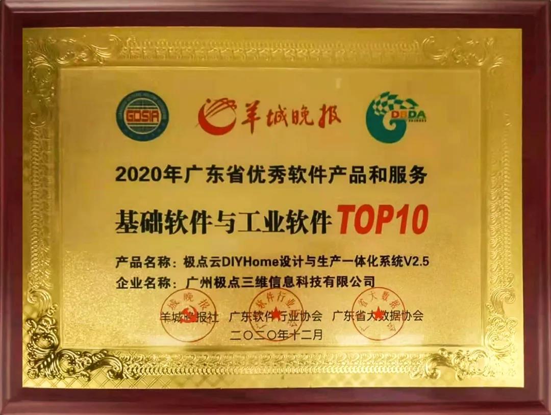 2020年12月,广东软件行业协会举办 “新基建 新动能 新生态”—2020年第九届粤港云计算大会暨第四届粤港澳大湾区ICT大会。会上,极点三维旗下明星产品“极点云DIYHome设计与生产一体化系统V2.5”荣获“2020年广东省优秀软件产品和服务”奖项。