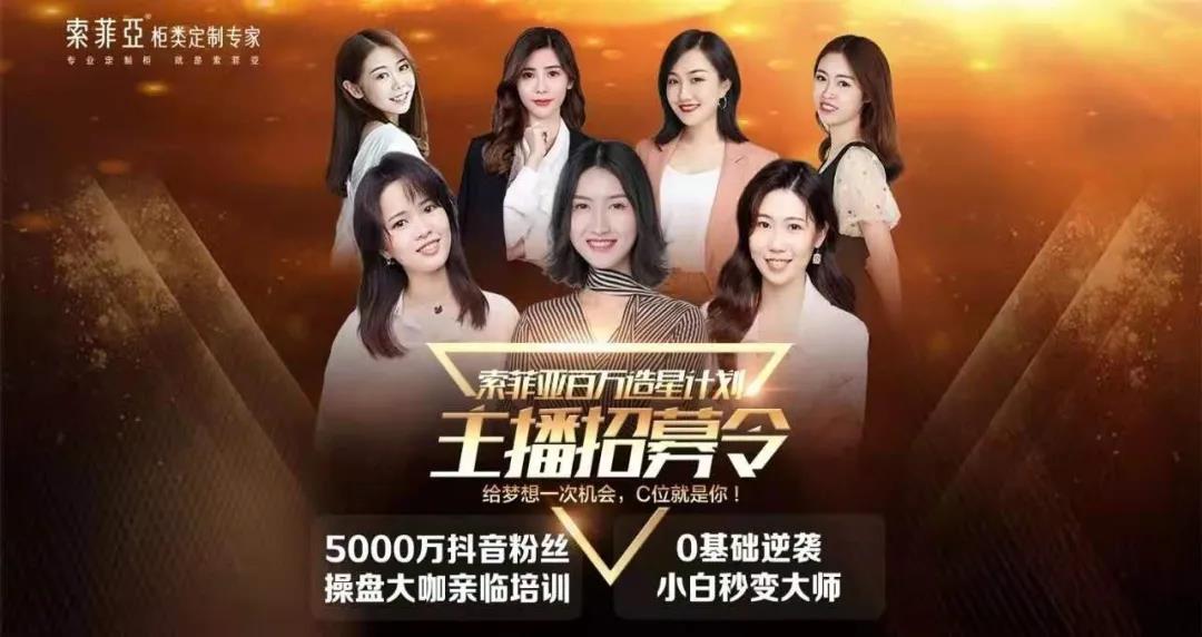 除了借助外部IP能量,索菲亚也不忘在企业内部培植“新势力”,为直播营销注入内在生命力。今年6月,索菲亚隆重启动“百万造星主播”大赛,面向全国4000家门店以及集团内部员工选拔最具营销能力的超级主播,进一步构建公司的私域流量。
