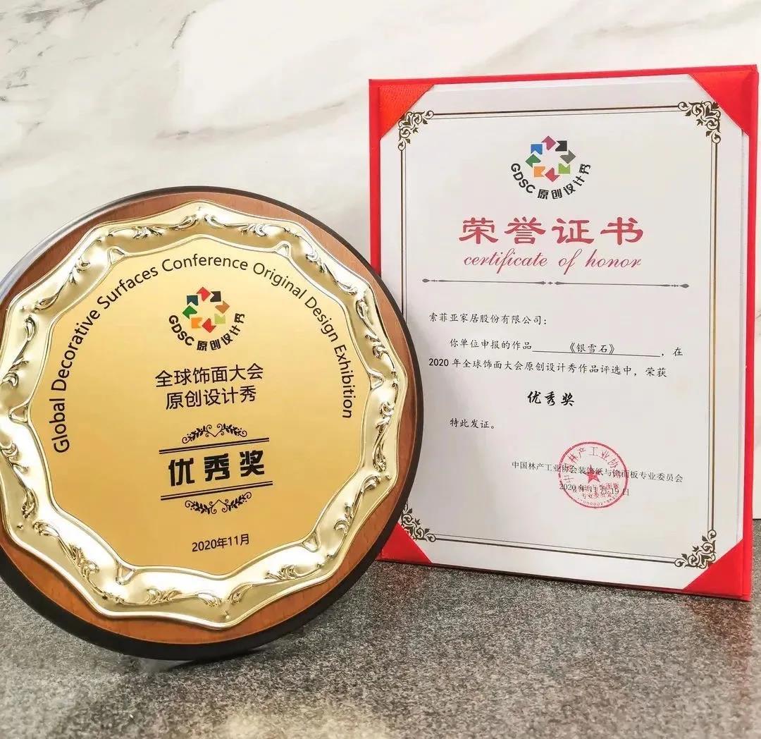 《银雪石》荣获“2020全球饰面大会(GDSC)原创设计秀”优秀奖、《星月弧》荣获“2020全球饰面大会(GDSC)原创设计秀”入围奖。