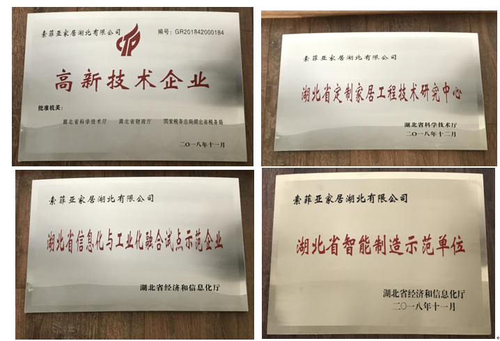 奖项鉴证实力。在索菲亚集团质量管理体系牵引下,湖北子公司不断提升技术提高品质,相继获得省市级荣誉。