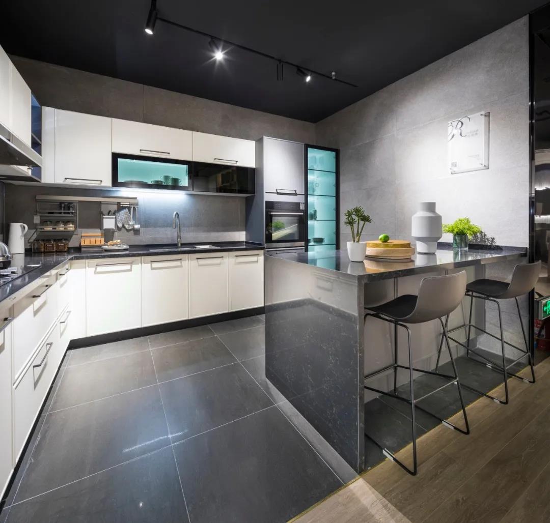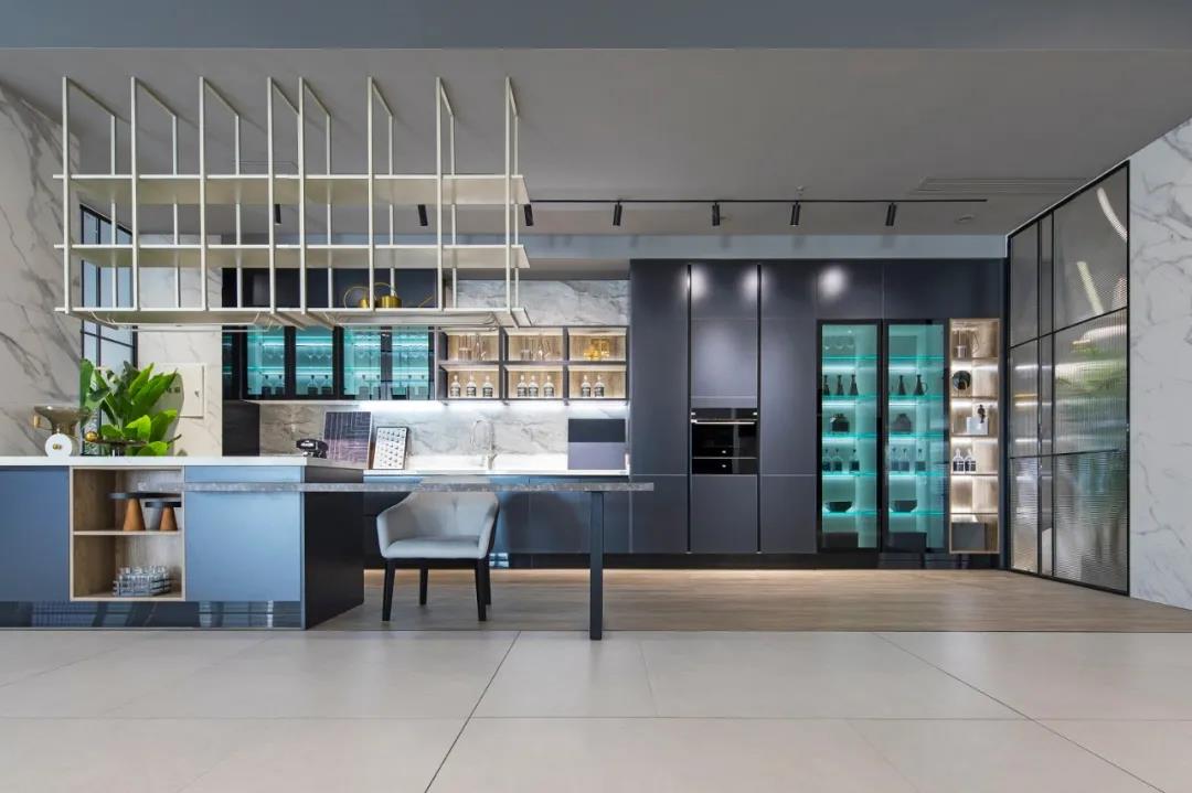 而在司米橱柜专区,开放式的产品展示将消费者的目光和体验感受聚焦在厨房空间中。通过灯光的氛围营造及产品的气质特色,关于厨房的故事与爱悄无声息地流转在整个橱柜体验区中。