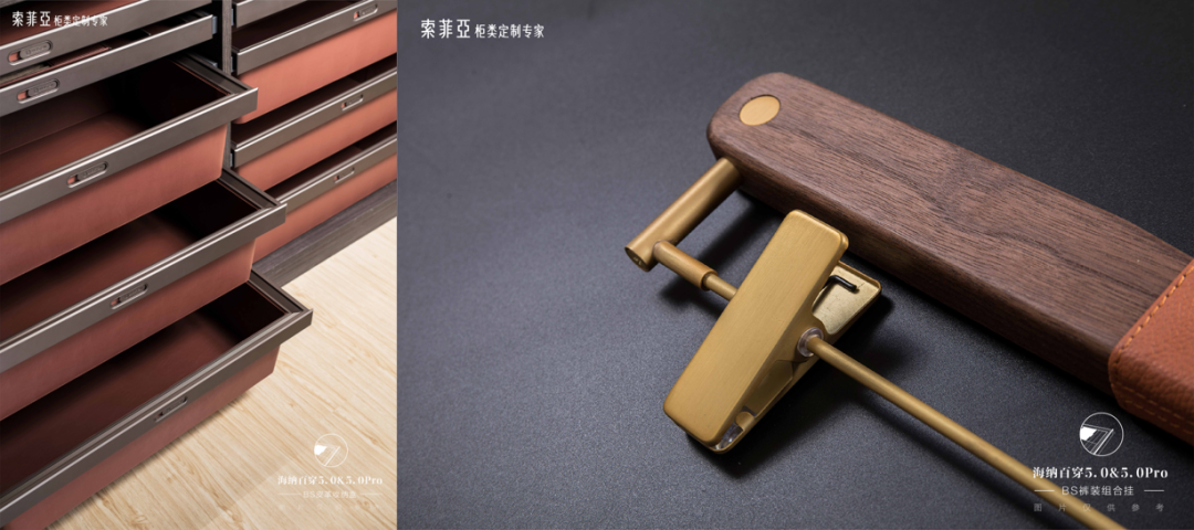 在「消费场景化」的大背景下,索菲亚正式推出了明星收纳系统的迭代升级版本——海纳百穿5.0&5.0 Pro精细化收纳系统,以动线收纳、精细收纳等4大硬核升级,解决消费者在实际收纳场景中各式各样的痛点,满足现代家居生活从“整理在一起”转向“高品质分类”的收纳需求。