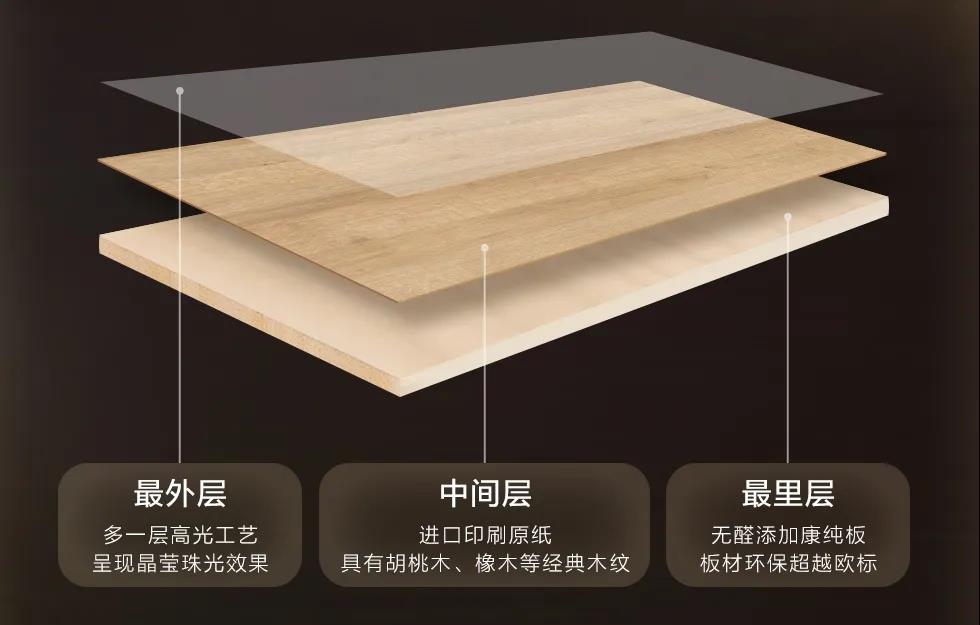 -最外层:多一层高光工艺,门板自带珠光效果,让居室blingbling;