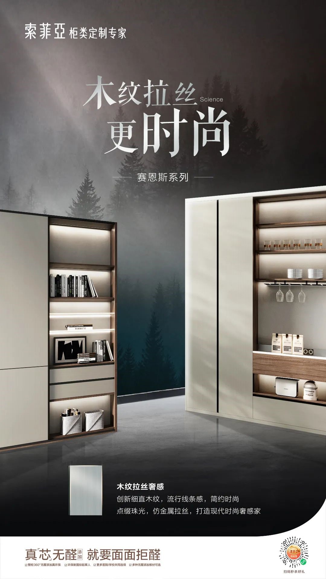 为满足现代消费的审美需求,索菲亚创新打造独特的细直木纹拉丝奢感产品——赛恩斯系列Science。