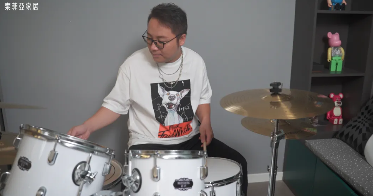 刚加完班的Sean,在家打着架子鼓等待客人的造访