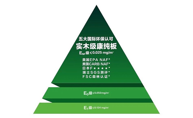 其中,E1级沿用了GB 18580—2017要求的基本指标;E0级沿用了GBT 35601-2017《绿色产品评价-人造板和木质地板》标准。