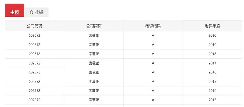 在稳健发展的同时,索菲亚通过高质量信息披露、提升治理与规范运作回馈投资者,在众多上市公司中起到良好的示范带头作用。上市以来,索菲亚不断完善投资者保护理念,认真履行信息披露义务,一直用最严格的标准来要求自身,在深交所连续 8年信息披露考评获评 A 级。