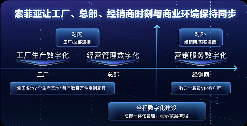 “消费者为王”的时代,企业需要更好地理解“人”这个主体。作为定制家居行业的龙头企业,索菲亚重视消费者体验,通过数字化运营,打通各个环节,将前端消费者与后端产品制造链接起来,从根本上提升运营效率,从而破解定制行业服务周期长,用户被动等待的痛点。