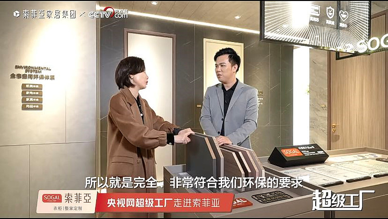 近日,消费者在装修甲醛问题上的痛点和疑问引起了主流媒体的关注,并终于获得了权威的指导和解答。3月11日,央视网《超级工厂》直播栏目选择以环保品质方面领誉定制家居行业的头部企业索菲亚为探访目的地,进行了一次深入的走访。央媒镜头不仅带领观众在线参观了索菲亚领跑行业的4.0数智工厂和高颜展厅,更就大众关注的环保问题进行了深入探讨,并揭示了很多过去人们深以为然的“环保误区”。