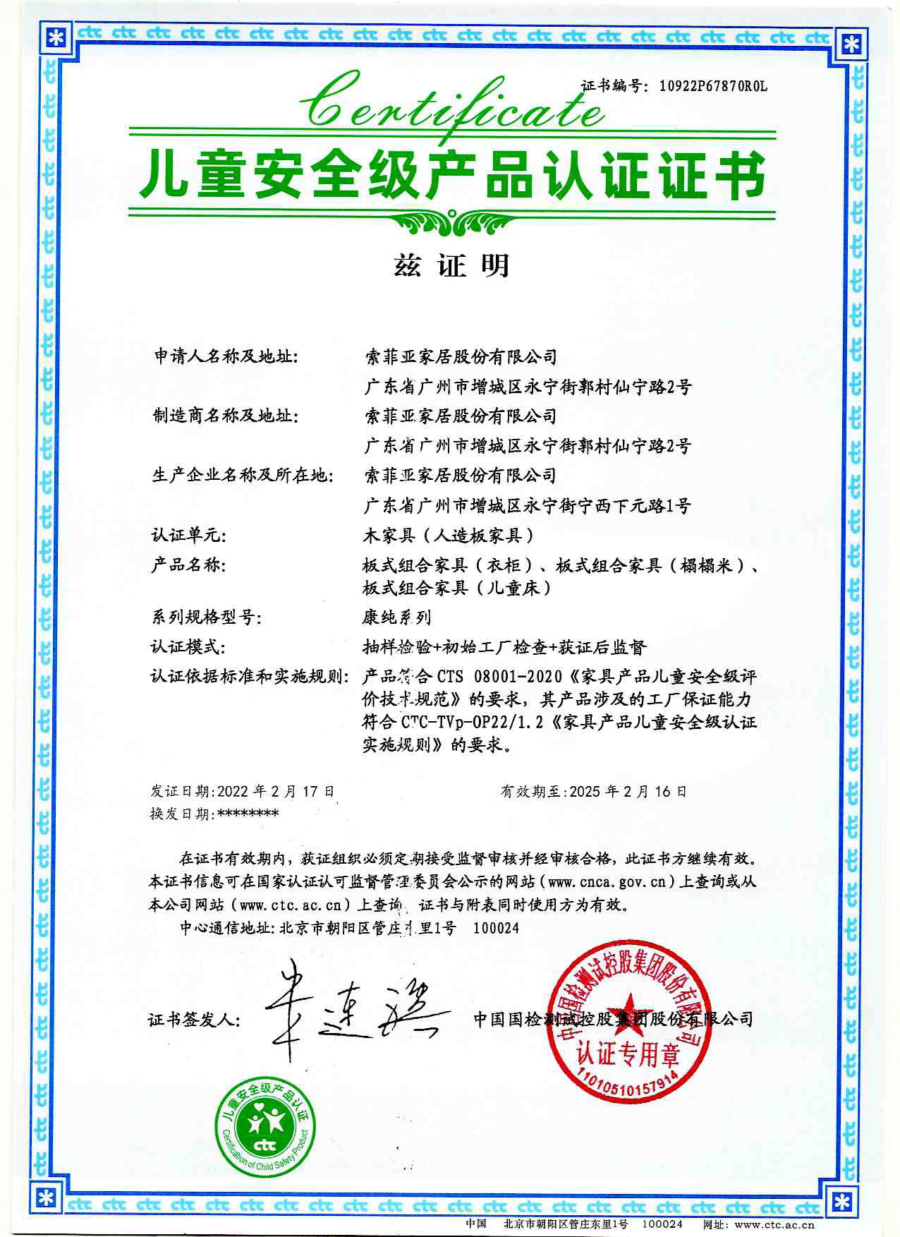 索菲亚的环保之路并未止步于此,为了更好地帮助消费者树立对家具产品环保的认知,索菲亚开始从技术认证到“用户心智”认证进行转变。从国家孕婴网绿色推荐、再到儿童安全级产品认证,索菲亚聚焦婴童群体,始终追求更高的环保标准,为消费者选购提供重要参考标准。