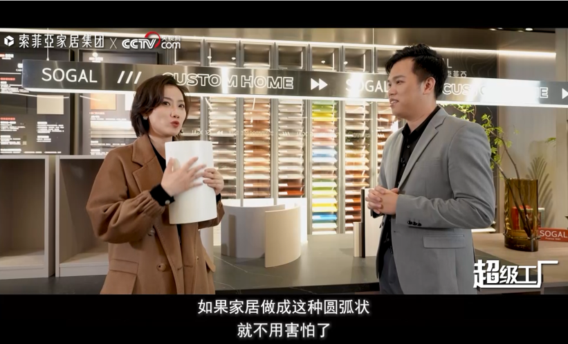 就在今年3月的央视网《超级工厂》直播中,索菲亚曾向广大消费者展示过物理结构的工艺优势。索菲亚率行业之先,多年前已经在行业内首先推出了台面倒圆工艺,随后又通过高频热压技术实现了侧板圆弧工艺,这种工艺运用在定制家居产品中可以避免边缘和尖端的安全隐患。