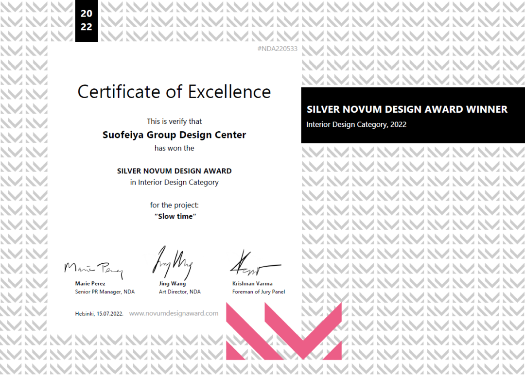法国NDA设计大赛,是世界领先的室内设计赛事,旨在发掘世界各地令人耳目一新的艺术创作,是国内外一线独立设计公司趋之若鹜的奖项。该奖项涵盖建筑、室内、景观、产品和平面设计领域,设计作品从世界各地纷沓而至,并由全球卓越的设计师、编辑和创意者组成的评审委员团队,根据作品质量、技术性、设计认证及设计分数等维度裁定,最终评选出数量有限的奖项,是全球建筑设计界最具影响力与含金量的奖项之一。