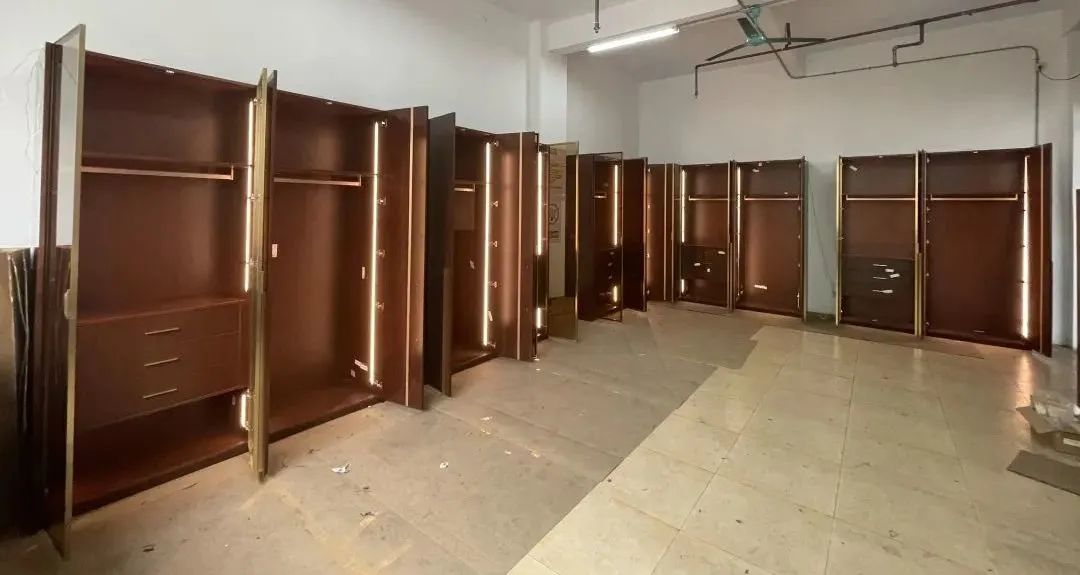 另一侧以土豪金铝框门和钢化茶色玻璃做经典柜体结构,经典线条金铝框封边拉手,带来复古气息,在室内灯光的点缀下,轻松打造卡塔尔贵族格调。
