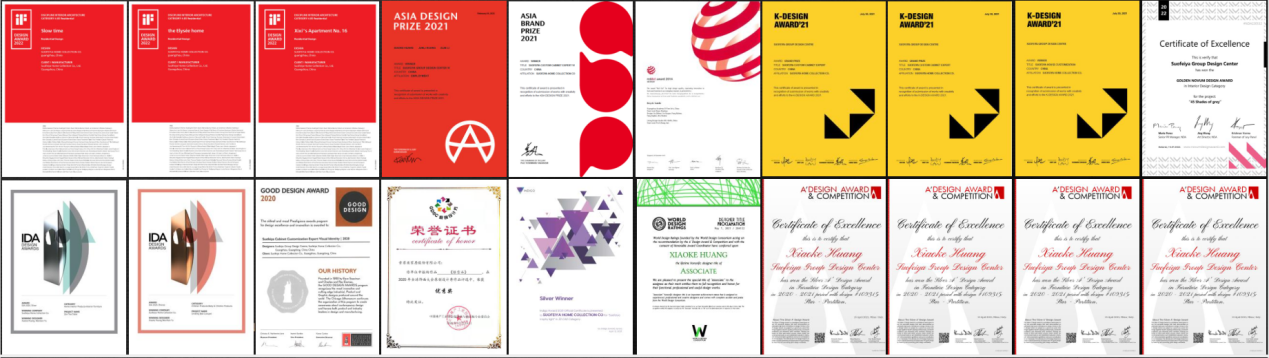 索菲亚设计获奖部分证书