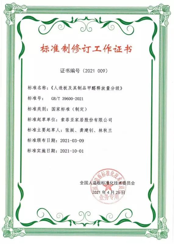 作为行业的领军品牌,索菲亚在不断提升自身技术和产品上优势的同时,也积极担负起了社会责任、探索和推动行业环保迭代升级和环保标准化事业的健康发展。作为项目的深度参与者,全程推动见证两项人造板新国标的诞生和发布。