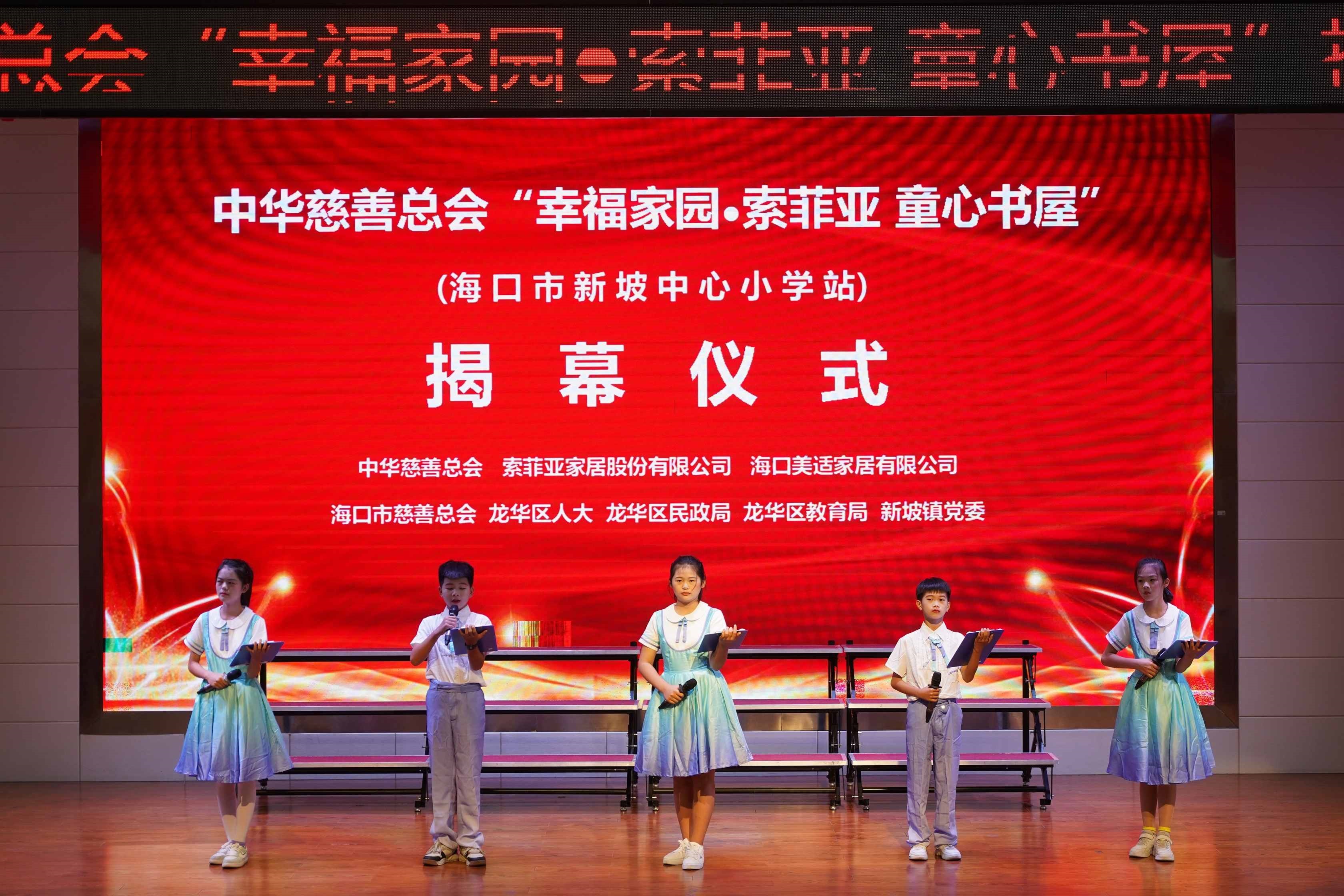 4月23日,在“世界读书日”这个特别的日子,海口市龙华区新坡中心小学报告厅内传来学生们的琅琅读书声,中华慈善总会牵头发起的“幸福家园·索菲亚童心书屋”项目在海口市新坡中心小学举行第二站揭幕仪式。