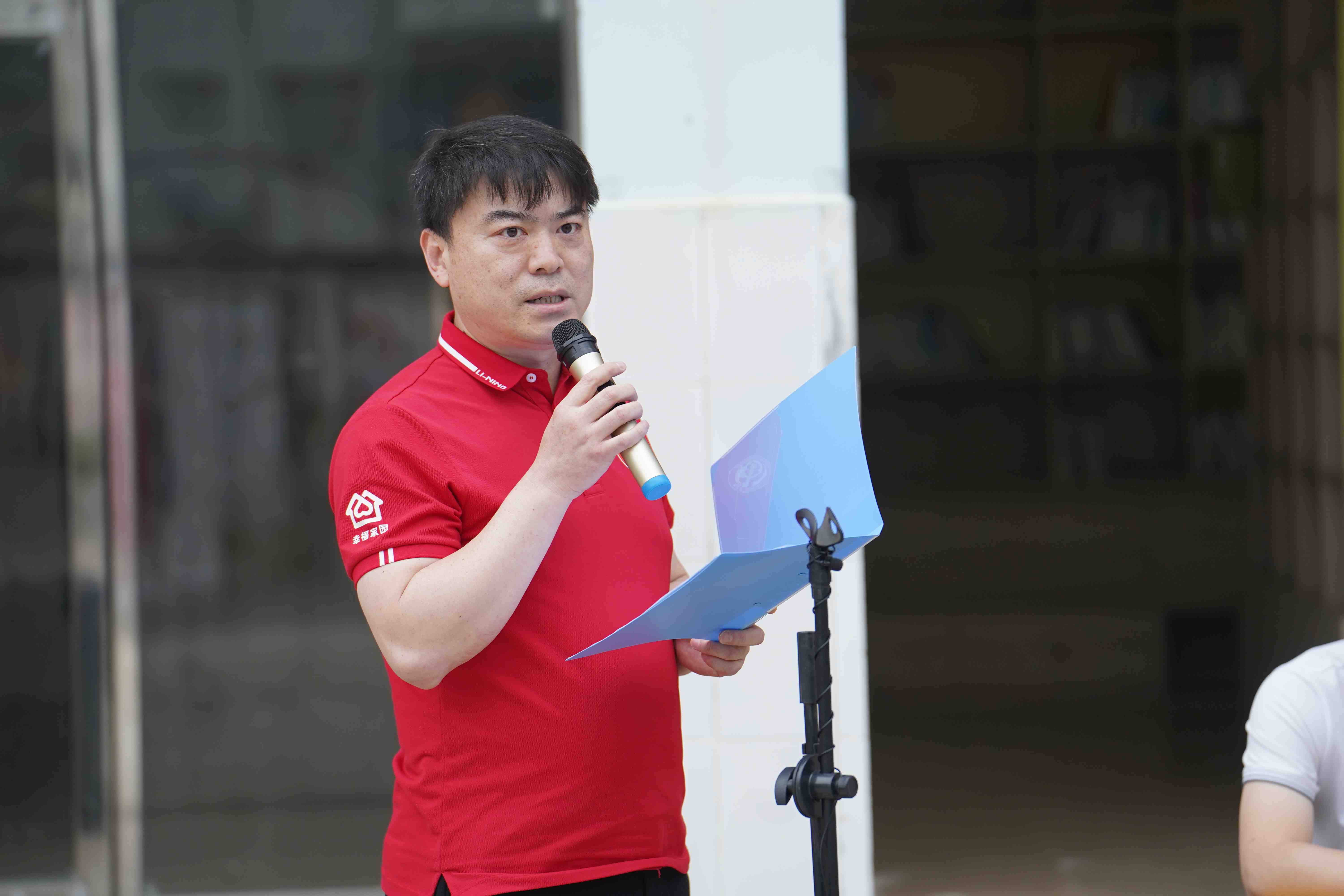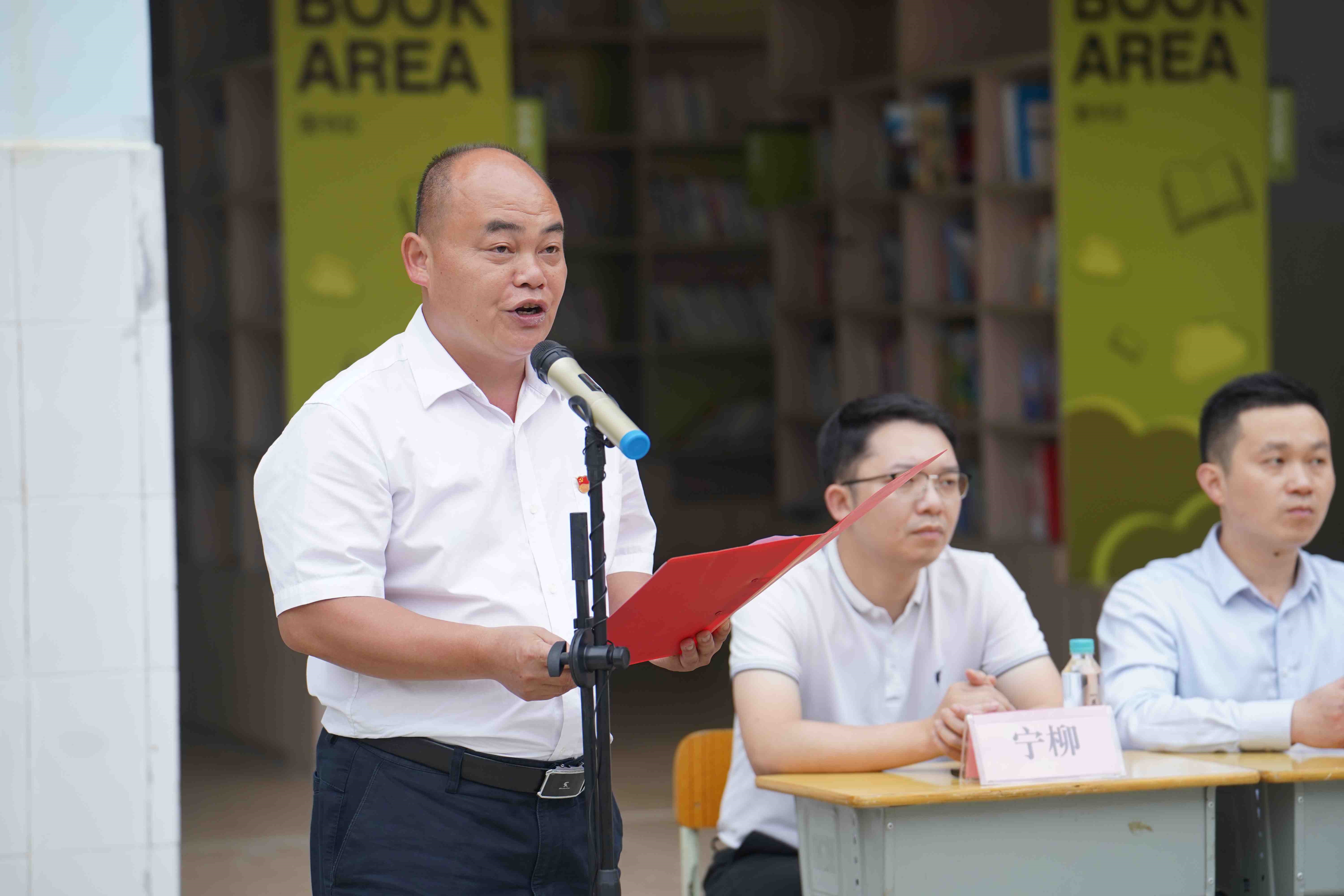广西南宁远洋商贸有限公司董事长严明在讲话中鼓励友谊镇中心小学的孩子们要爱上阅读,从书中汲取营养,他也期望在未来为更多有需要的孩子带来良好的阅读空间。