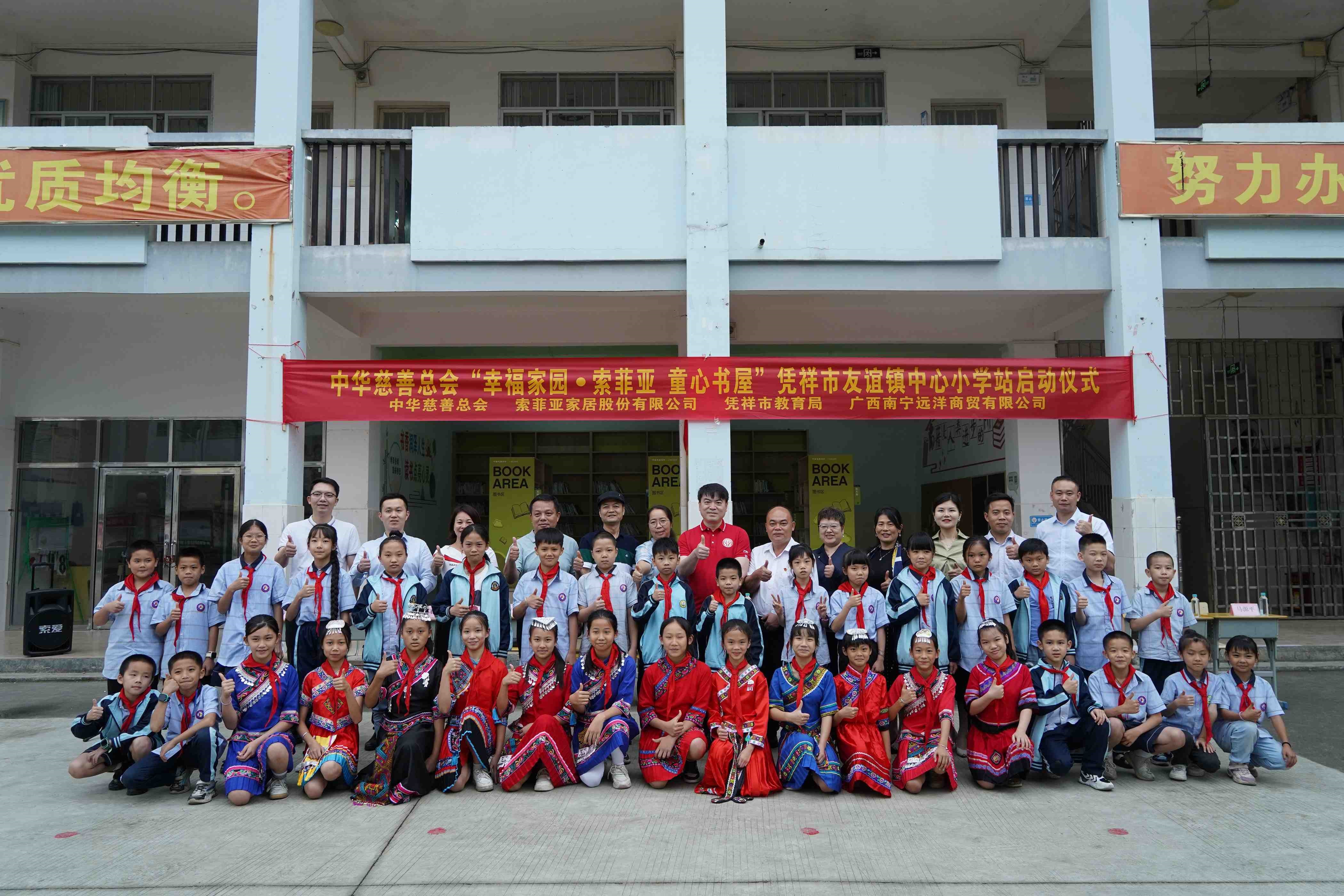 在这样的大背景下,5月8日,在广西省凭祥市这个极具民族特色的边陲城市里,中华慈善总会“幸福家园·索菲亚 童心书屋”第三站启动仪式,在凭祥市友谊镇中心小学圆满举行。