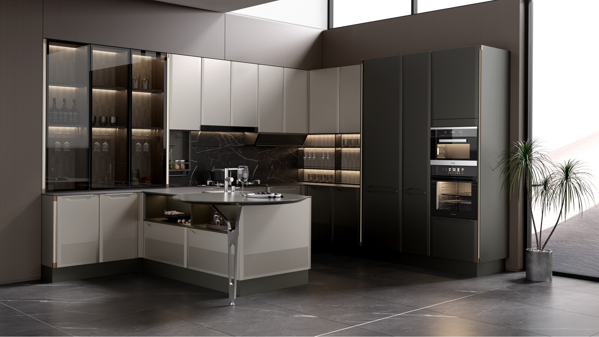 莱萨橱柜的门型设计仿爱奥尼克柱式纤细轻巧并富有精致的圆槽雕刻,以及复刻琴弓弓头的拉手造型,赋予产品古典浪漫气息,将古典文化艺术与现代审美渗透在家居生活方式里让消费者感知和共鸣。