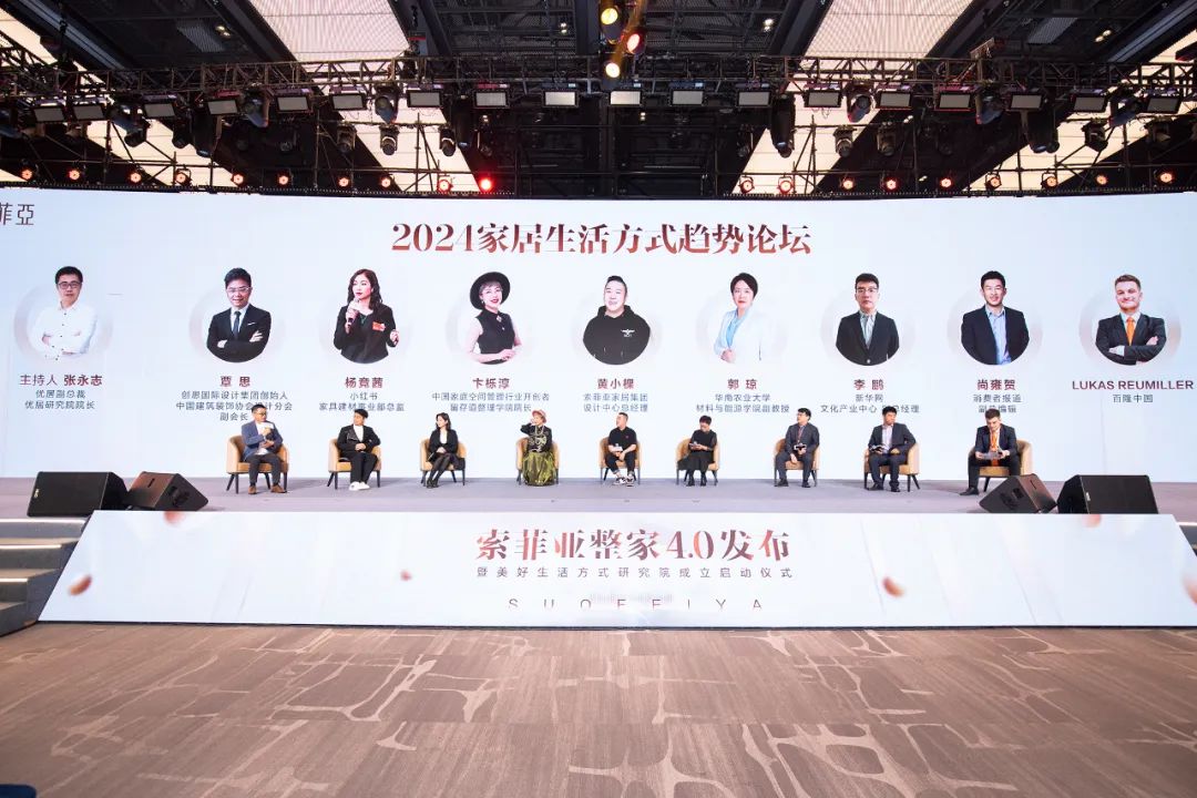 索菲亚家居集团总裁王兵、副总裁陈炜、创思国际设计集团创始人&中国建筑装饰协会设计分会副会长覃思、新华网文化产业中心副总经理李鹏、消费者报道副总编辑尚雍贺、优居副总裁&优居研究院院长张永志、中国家庭空间管理行业开创者&留存道整理学院院长卞栎淳、小红书家具建材事业部总监杨竞茜、华南农业大学材料与能源学院副教授郭琼、万华禾香集团副总裁李涛、美的集团中国区定制行业总经理李想、舒达家居用品张琳、德国海蒂诗张腾腾、夏特装饰全球技术专家Robert Munschke、百隆中国Lukas Reumiller、索菲亚家居集团设计中心总经理黄小棵、索菲亚家居研究院院长叶晓勇等重磅嘉宾齐聚一堂,以多元生活方式为切口探索整家定制发展生态,助力美好生活全新升级。