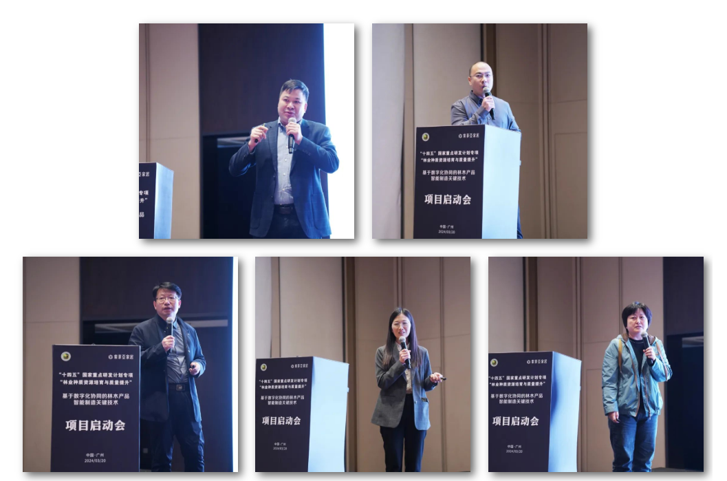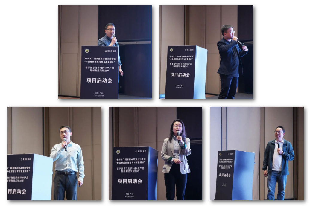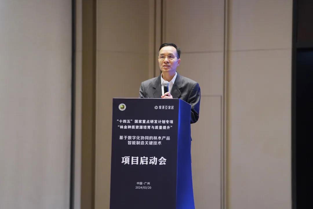3月20日,“十四五”国家重点研发计划项目“基于数字化协同的林木产品智能制造关键技术”项目启动会在广州市召开。中国农村技术开发中心董文研究员、广东省科技厅李旭东副厅长、广州市科技局林焕绪总工程师、中国林业科学研究院林产化学工业研究所蒋剑春院士、中南林业科技大学党委书记吴义强院士、西南林业大学杜官本院士、中国林业科学研究院木材工业研究所所长傅峰研究员、东北林业大学副校长于海鹏教授、国家林草局产业发展规划院处长张忠涛正高级工程师、华南农业大学材料与能源学院院长胡传双教授、中国农科院农业信息研究所王义明研究员、索菲亚家居股份有限公司江淦钧董事长、王兵总裁、中国林业科学研究院木材工业研究所副所长兼项目负责人吕斌研究员、索菲亚家居股份有限公司总工张挺正高级工程师、南京林业大学吴智慧教授等领导、专家、项目法人单位代表、课题法人单位代表、子课题法人单位代表、用户代表、项目与课题负责人、项目技术骨干等90余人参加此次会议。