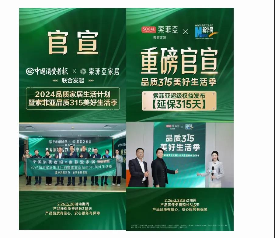 今年第一季度,索菲亚在新华网、中国消费者报社的见证下,推出了“延保315天”的超级权益——消费者选购索菲亚,在原有的保修年限上,可享质保免费延长315天,给予消费者超长时间的品质保障。
