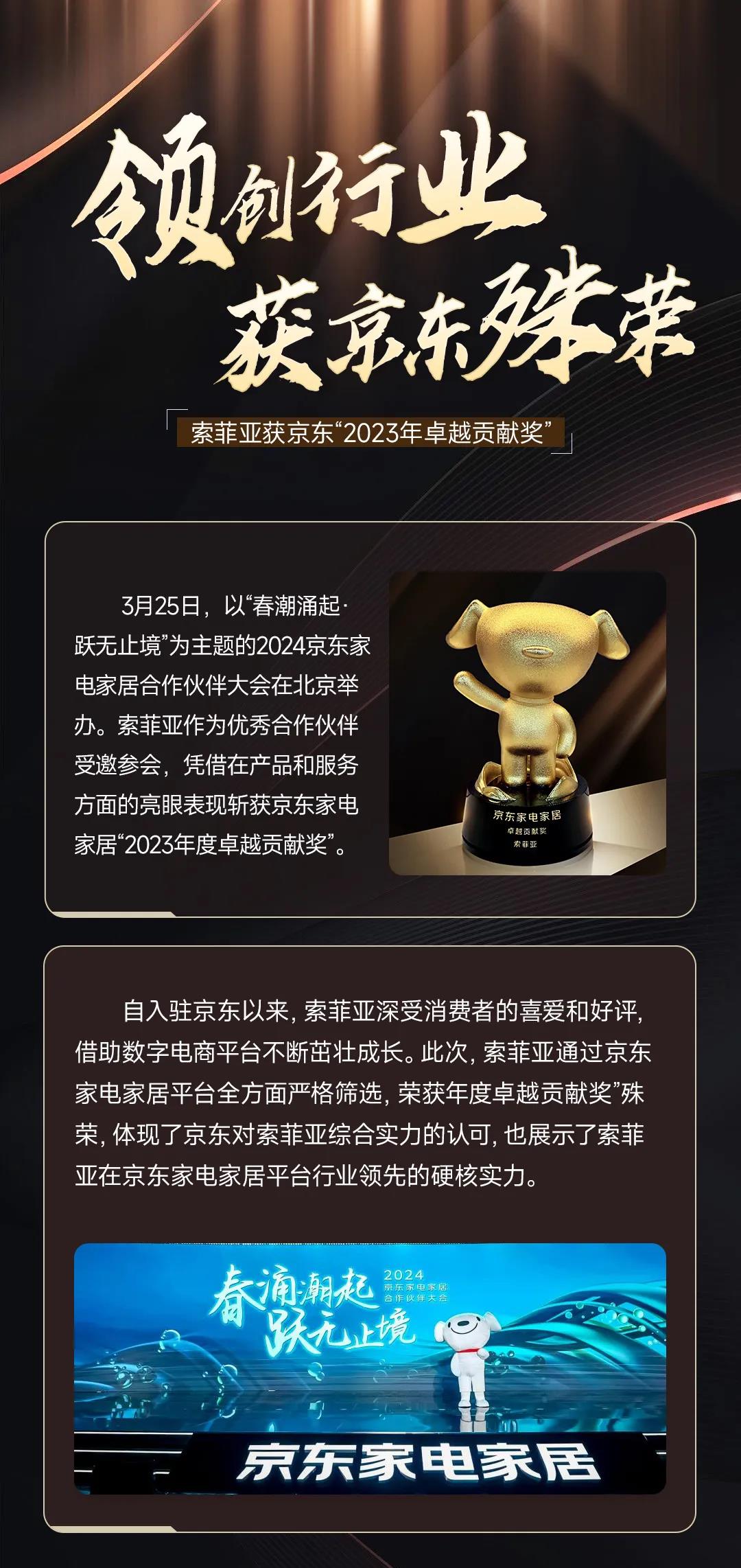 索菲亚荣获京东颁发“2023年卓越贡献奖”