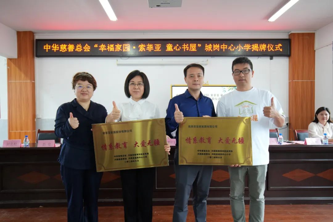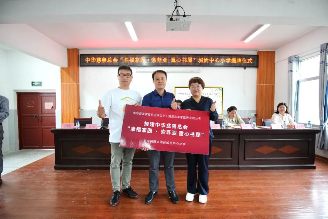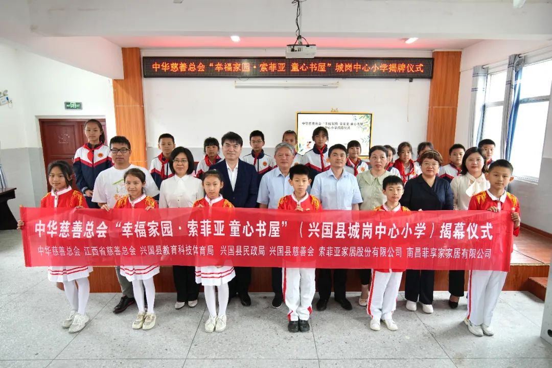 彰显人文关怀精神,积极履行企业社会责任,索菲亚家居股份有限公司携手南昌菲享家家居有限公司捐赠资金与家具产品,专项用于援建“幸福家园·索菲亚 童心书屋”——兴国县城岗中心小学,旨在共同改善中小学生读书环境,促进学生综合素质的全面发展。