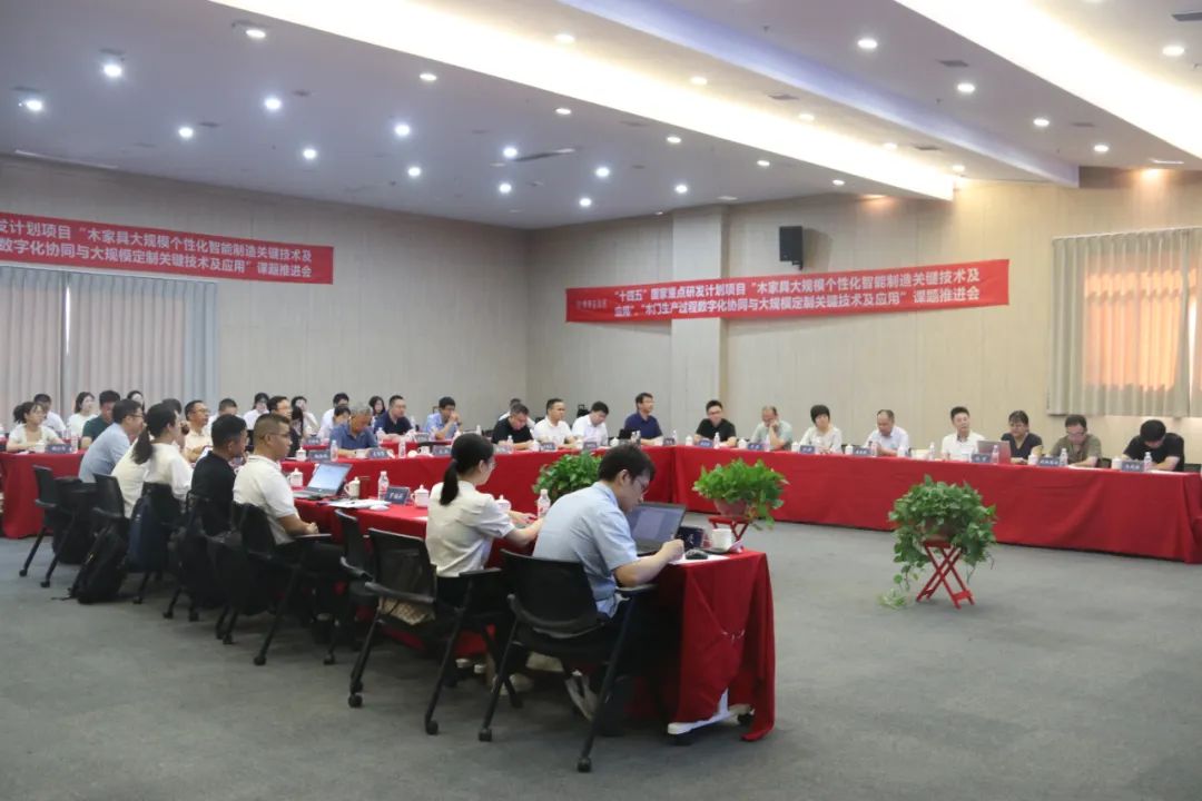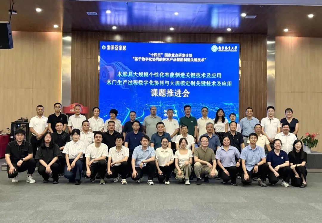 本项目由索菲亚家居股份有限公司牵头,中国林业科学研究院木材工业研究所、南京林业大学、中南林业科技大学、西南林业大学等10家优势科研院所、高校和行业头部企业共同承担,是行业唯一由企业牵头承担的“十四五”国家重点研发计划项目。项目的研究将实现木质家居产品大规模个性化定制及人造板全自动、连续化、数字化、网络化制造,预计建成示范生产线22-23条,其中索菲亚负责建设4条板式家具数智化示范生产线、2条复合门示范生产线、1条大幅面人造板压贴示范生产线。本次推进会旨在加强课题、子课题间的交流协作,及时解决实施过程中的问题,确保课题研究任务的顺利进行。